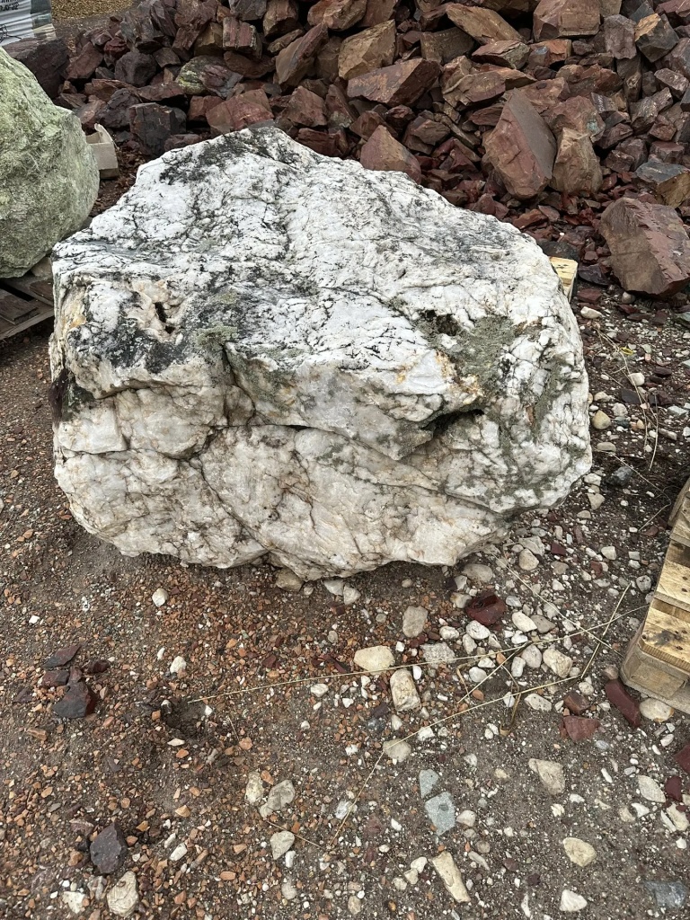 Цвет валунов: белый, при ближайшем рассмотрении видна кристаллическая структура кварца с небольшим количеством вкраплений.